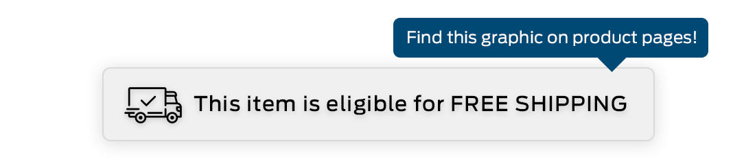 Items that are in-stock and eligible for free shipping are noted on our site with the graphic below.